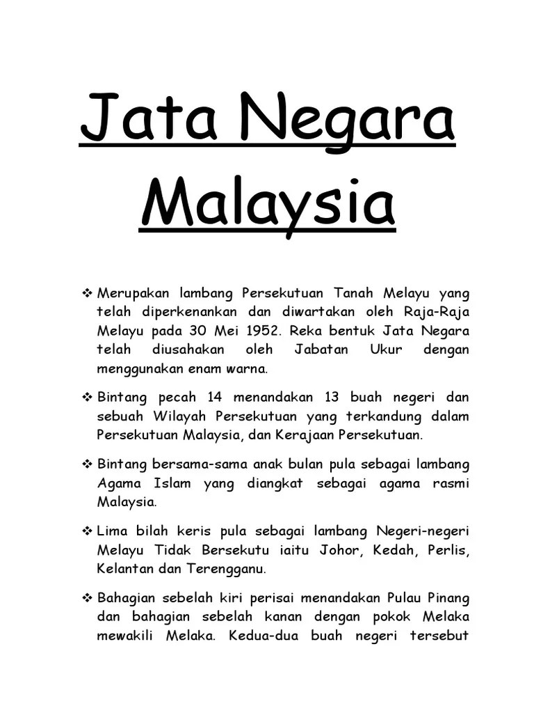 Reka bentuk jata negara telah diusahakan oleh jabatan ukur dengan menggunakan enam warna. Hitam dan putih mewakili pahang. Learn vocabulary, terms and more with flashcards, games and other study tools. Bintang pecah 14 menandakan 13 buah. Jata diatas adalah lambang jata negara malaysia yang menunjukkan bintang pecah 14 yang menandakan 13 buah tergolong dalam persekutuan hitam putih dan kuning adalah perak, merah, hitam dan kuning adalah negeri sembilan.