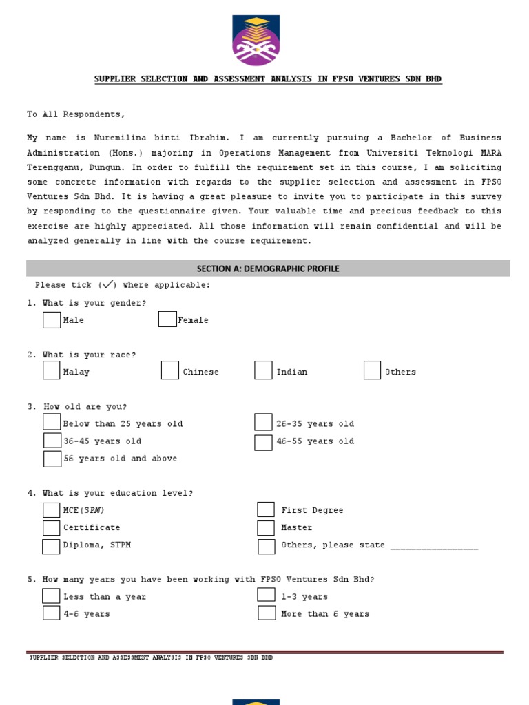 Mengemukakan soal selidik bagi memenuhi keperluan kajian lapangan ini.